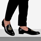 Anza Black Hand-Embroidered Ethnic Slip-Ons