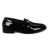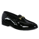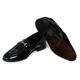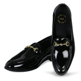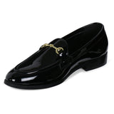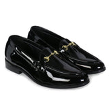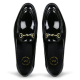 The Brat Army Henley Patent Black Horsebit Buckle Loafers.