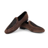 The Brat Army Brown Beaded Suede Loafers