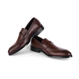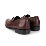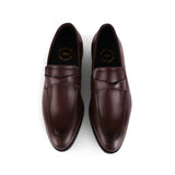 Introducing the " Derby Classic Penny Twisted Strap Loafers," a contemporary reinterpretation of the timeless penny loafers that includes subtle modifications, such as the addition of a unique twisted strap and a refined, narrower toe cut, lending them a distinctively masculine and polished appearance. This refined design is the epitome of versatility, making it an impeccable choice for formal occasions, as it complements a wide range of bottoms, from trousers to denim, effortlessly. Elevate your style with the subtle yet impactful touch of the twisted strap, ensuring a fashion-forward and sophisticated look that never goes out of style.