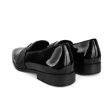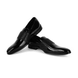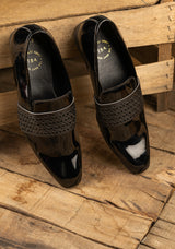 The Brat Army Montreux Patent Black Carved Strap Loafers.