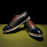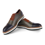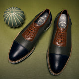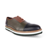 Elevate your footwear collection with The Brat Army's latest design—a harmonious blend of style and comfort. These men's sneakers showcase a rich combination of olive, black, and brown hues in premium grain-textured faux leather, offering a sophisticated yet rugged appeal. The standout multicolor sole not only adds a vibrant touch but also ensures enhanced traction and durability. Crafted for the modern man, these sneakers seamlessly transition from casual outings to more polished occasions, making them a versatile addition to any wardrobe.