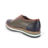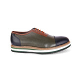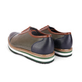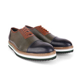 The Brat Army Men's Olive & Brown Grain-Textured Faux Leather Sneakers with Multicolor Sole