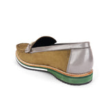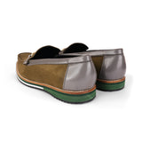 The Brat Army Olive Suede Loafers with Grey Accents & Multicolor Sole
