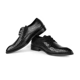 Sharp. Sophisticated. Unapologetically premium. These Narrow Medium Pointed Croc-Look Formal Derby Lace-Ups are crafted for the modern gentleman with an eye for high-end style. Featuring a sleek silhouette and a refined crocodile-textured finish, these shoes exude understated luxury and confidence.