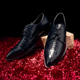 The Brat Army Narrow Croc-Textured Pointed Derby Lace-Ups – Elegance Redefined