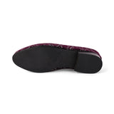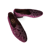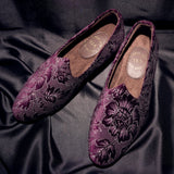 Step into understated luxury with these Royal Plum Velvet Ethnic Slip-Ons — a perfect blend of elegance and tradition. Designed in a deep purple suede with an intricate floral jacquard pattern, these shoes are made to stand out while keeping it classy. Whether it's your big day or a cultural celebration, they strike the ideal balance between bold and refined.