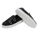 Introducing the Madison Double Monk Sneakers from The Brat Army, featuring a buckle fastening, a sleek white rubber sole, and a rounded toe for a touch of refinement. Ideal for a laid-back evening, these sneakers offer unparalleled versatility, seamlessly complementing any outfit. Whether you're grabbing a coffee or heading to the office, their adaptability ensures they're the perfect choice for any occasion. Slip into the Madison Double Monk Sneakers and elevate your style effortlessly, whether you're hitting the streets or the boardroom.